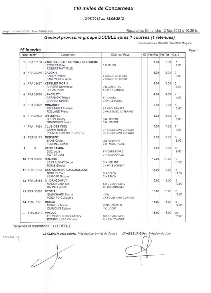 Classements - 110 milles HN et Solo Figaro