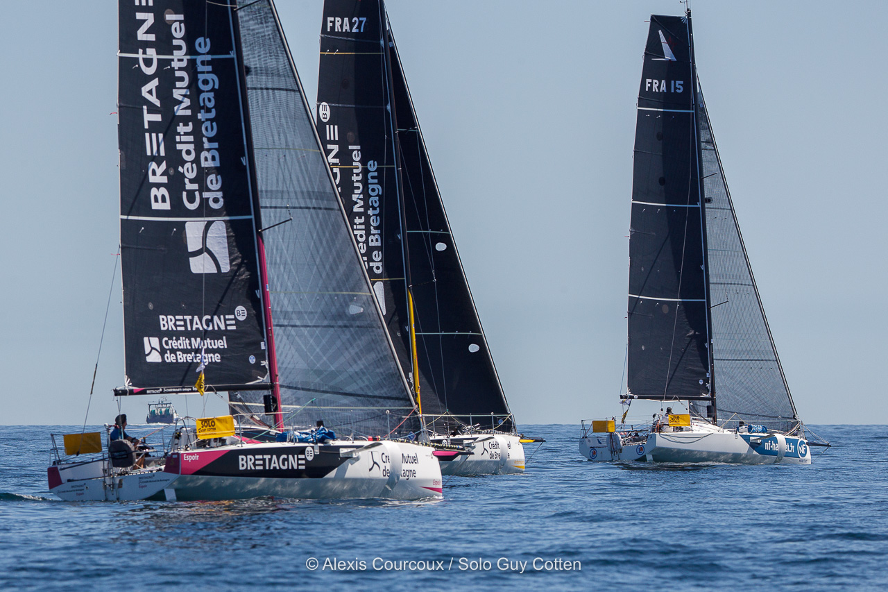Partie hier à 15h08, la flotte de la Solo Guy Cotten a su s’extirper du petit temps rencontré sur le début du parcours et évolue désormais dans un flux d’une dizaine de nœuds le long des côtes du Finistère sud. Après 25 heures de course, et de multiples rebondissements, les bateaux naviguent groupés en direction de la prochaine marque des Birvideaux, qu’ils devraient atteindre en début de soirée. Malgré les écarts latéraux observés au sein des 30 bateaux encore en course*, les routages n’annoncent que quelques minutes d’intervalle entre eux. Rien n’est joué !
