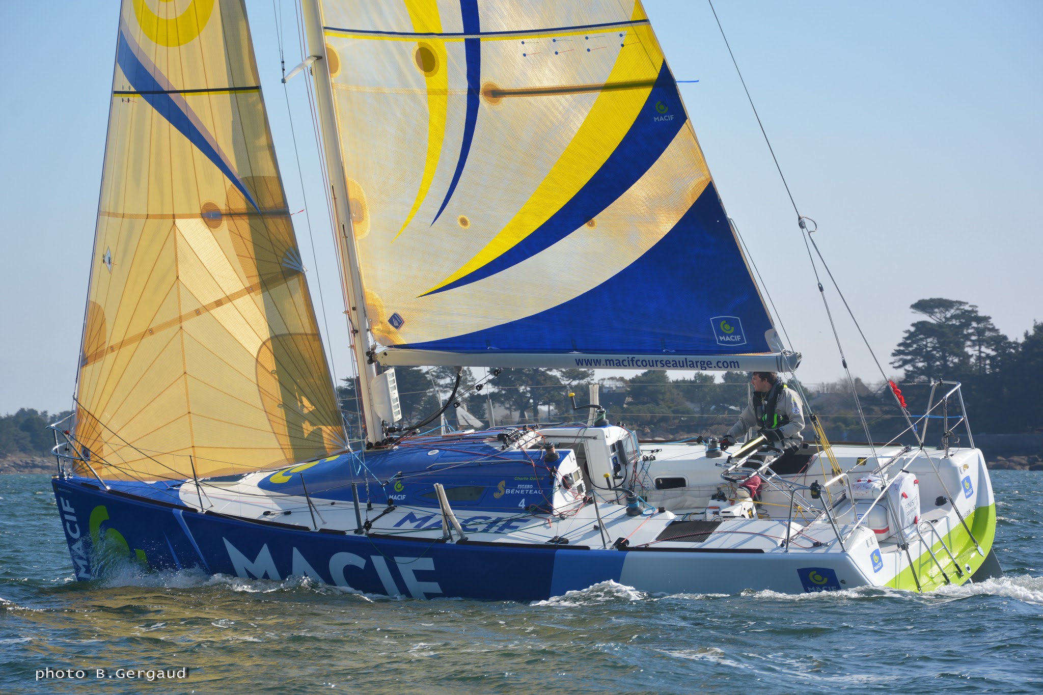 En fin de nuit, Erwan Tabarly (Armor Lux) s’est vu griller la politesse par l’impressionnant Charlie Dalin (Skipper Macif 2015), qui pointe désormais à moins de 30 milles nautiques de l’arrivée à Concarneau.